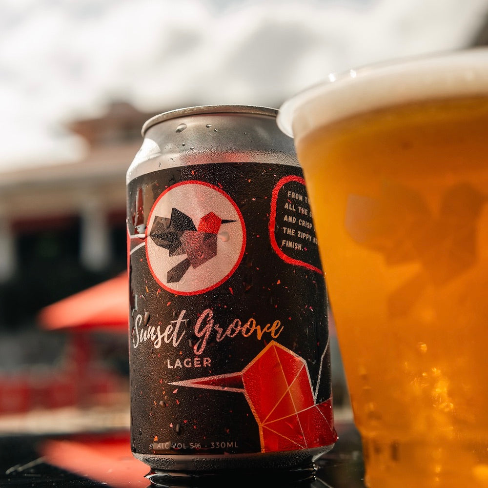 Enjoy one 330ml cup of Sunset Groove Lager, freshly poured onsite.